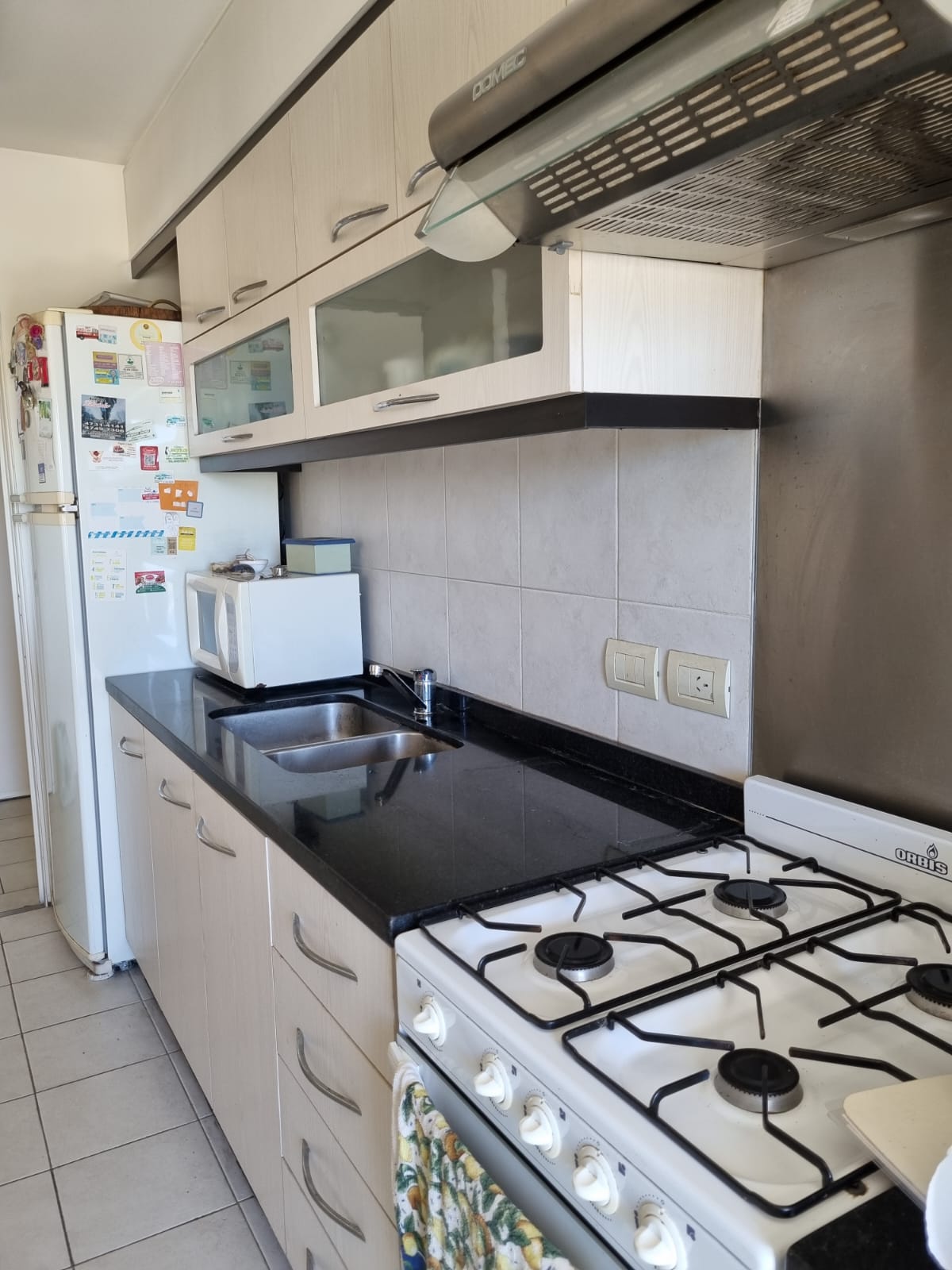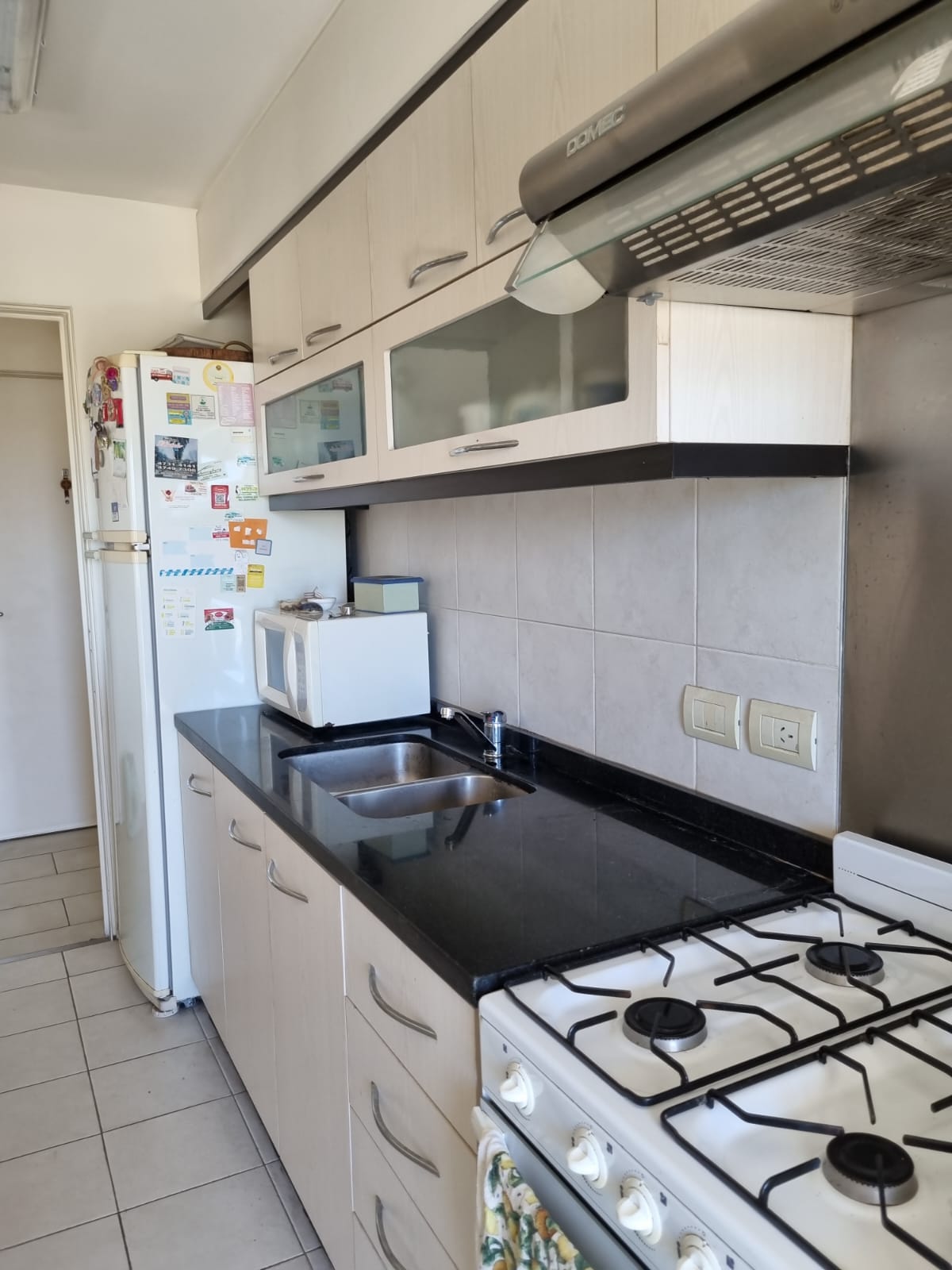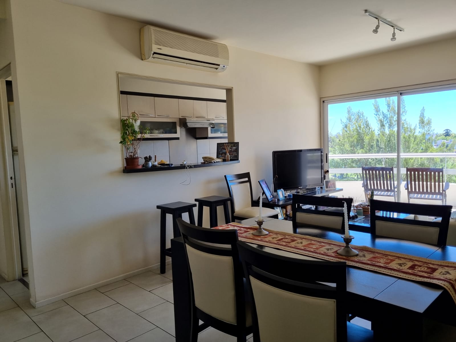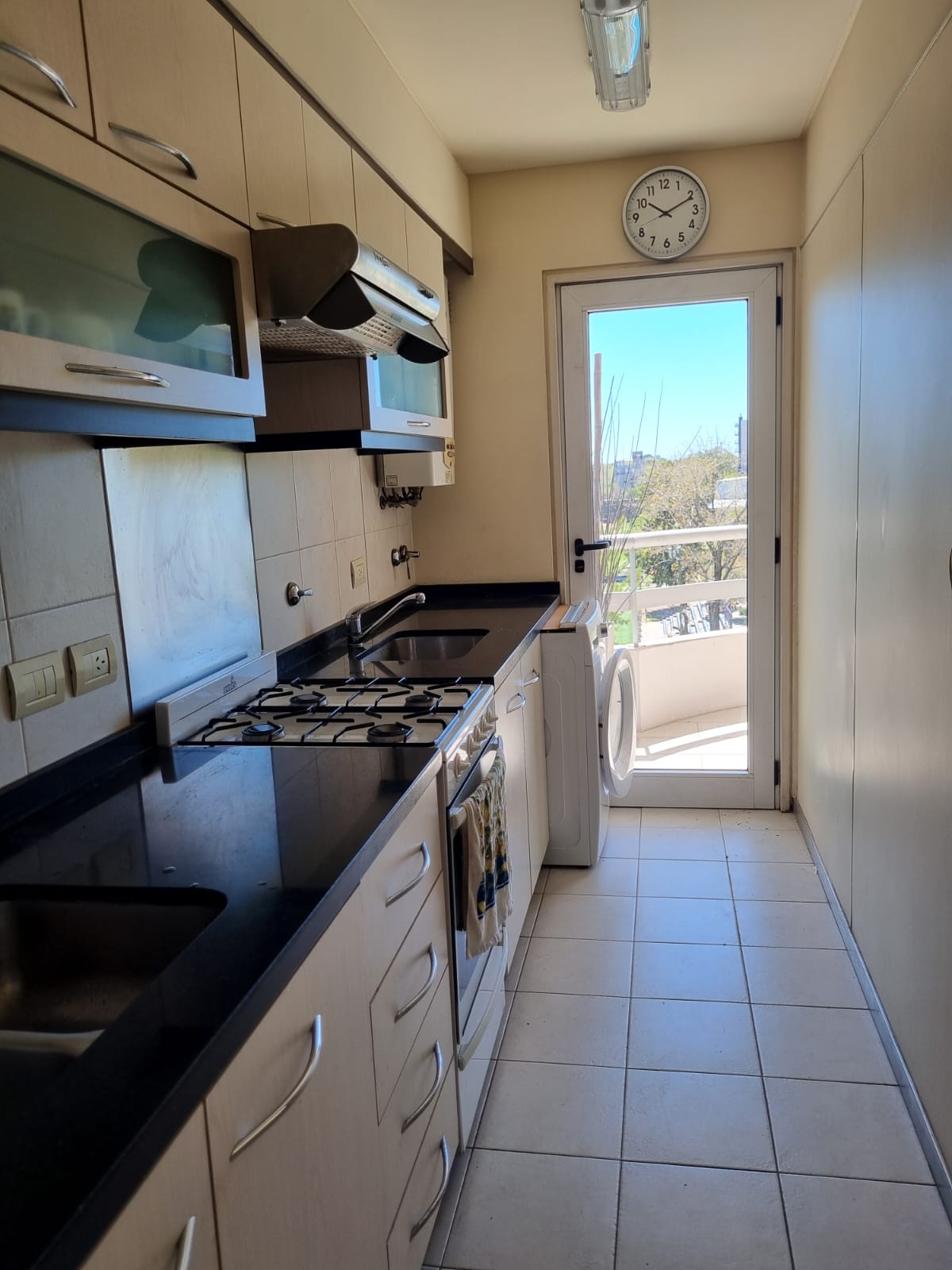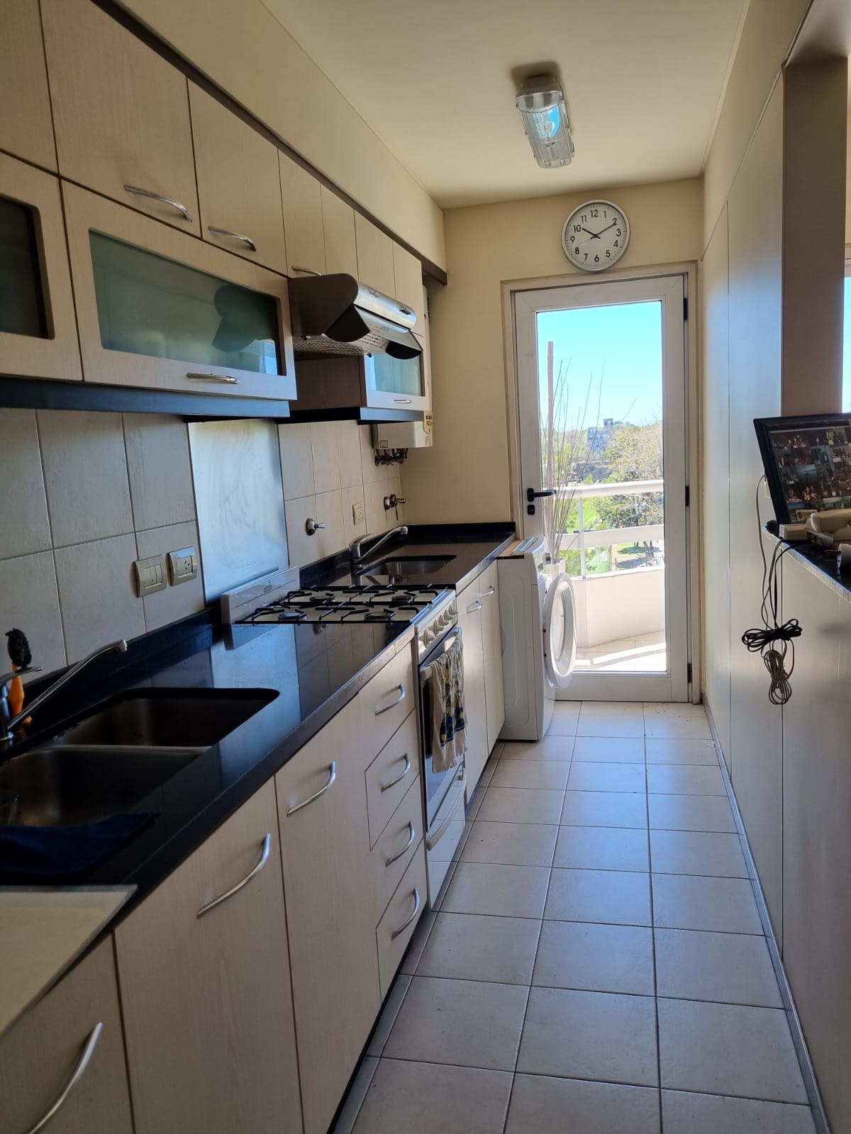 El living comedor y la cocina completa ambas con salida al balcón y una excelente vista al club.
